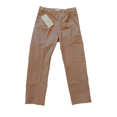Pantaloni bambino in caldo cotone color cammello, con coulisse interna, apertura con bottone in vita. Collezione autunno inverno Manuel Ritz.