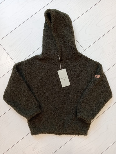 Felpa teddy verde militare con cappuccio. Collezione autunno inverno Manuel Ritz.