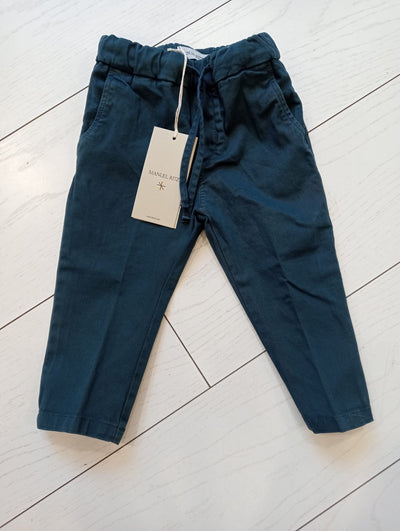 Pantaloni bambino in caldo cotone, color petrolio, con coulisse esterna. Collezione autunno inverno Manuel Ritz.