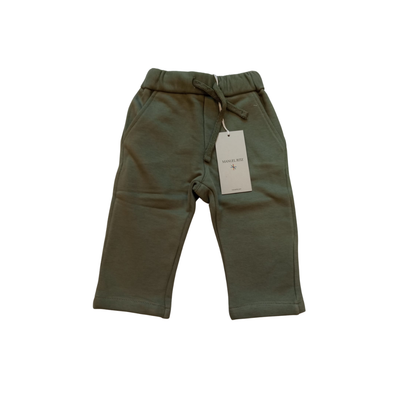 Pantalone jogger bambino felpato verde militare con coulisse esterna. Collezione autunno inverno Manuel Ritz.